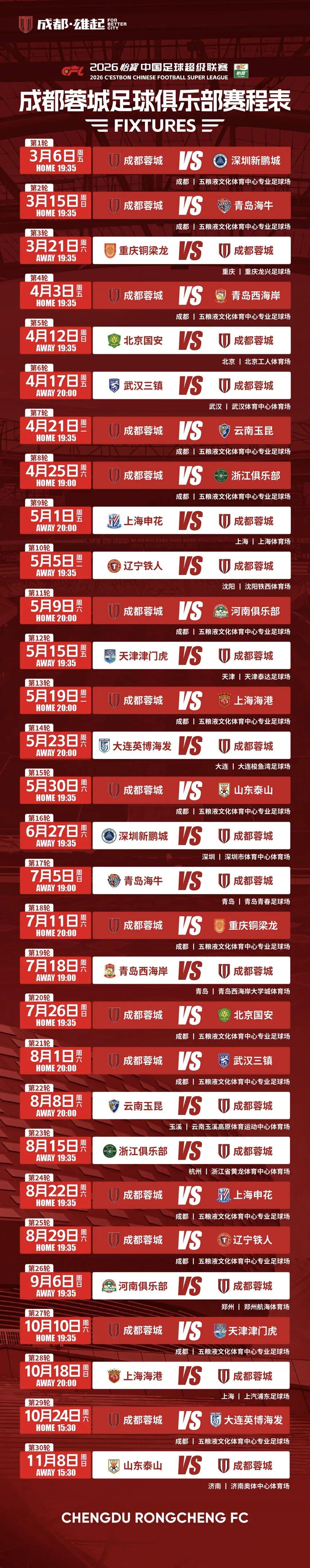 成都蓉城中超观赛赛程
